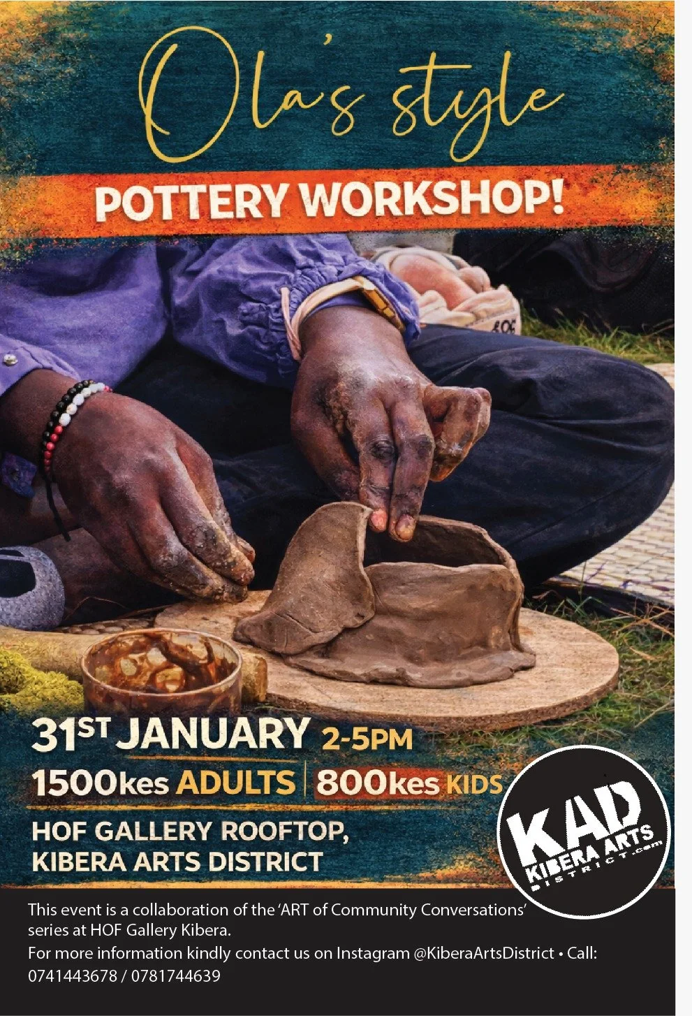 The month of January we are doing a month long series of events to bring conversations and engagement to the Kibera Arts District Join us for the "ART of Community Conversations" You are welcome to register for the “Pottery Workshop” that will be hosted on the gallery rooftop led with Ola’s style.
